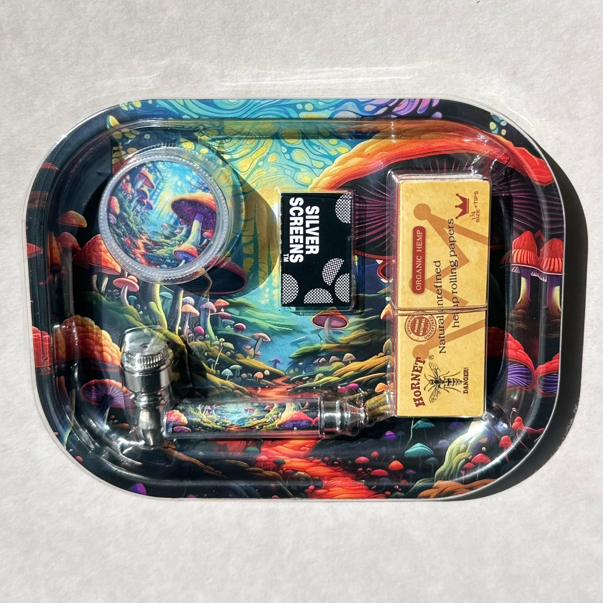 5x7” Mushroom Forest Rolling Tray Set – Complete Smoking Kit - 5 Pieces