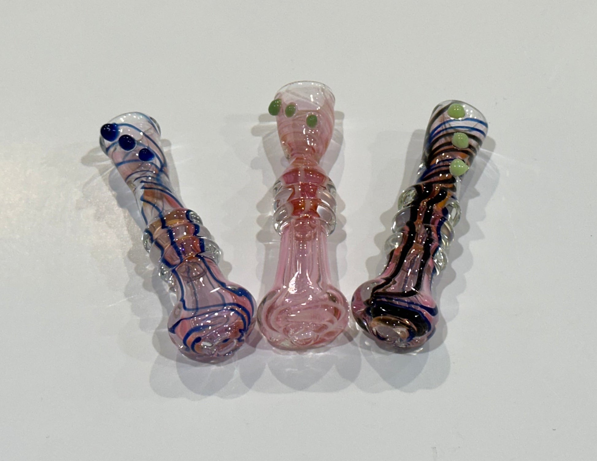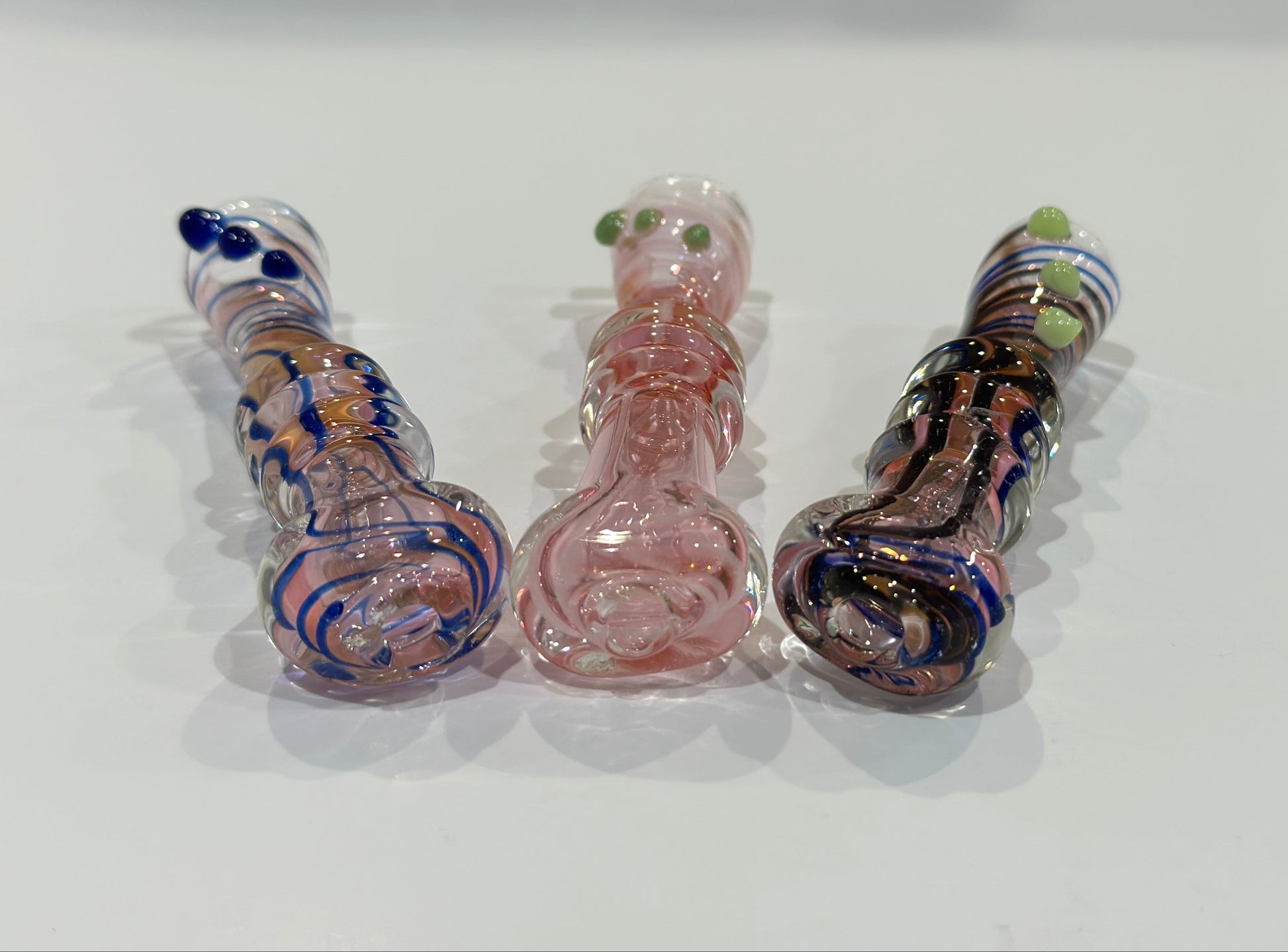 Add a touch of art to your smoke ritual with this beautifully crafted 3-inch hand-blown glass chillum. Each piece is individually made by skilled glass artists, featuring stunning swirls, vibrant color accents, and raised glass marbles for grip. No two chillums are exactly alike — every piece is a unique mini masterpiece.