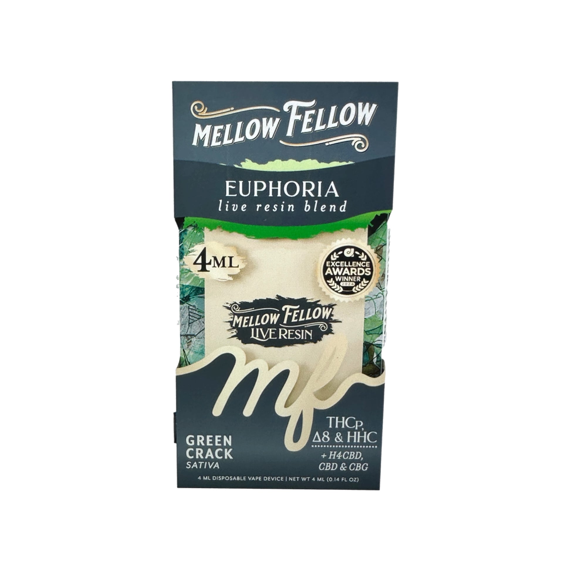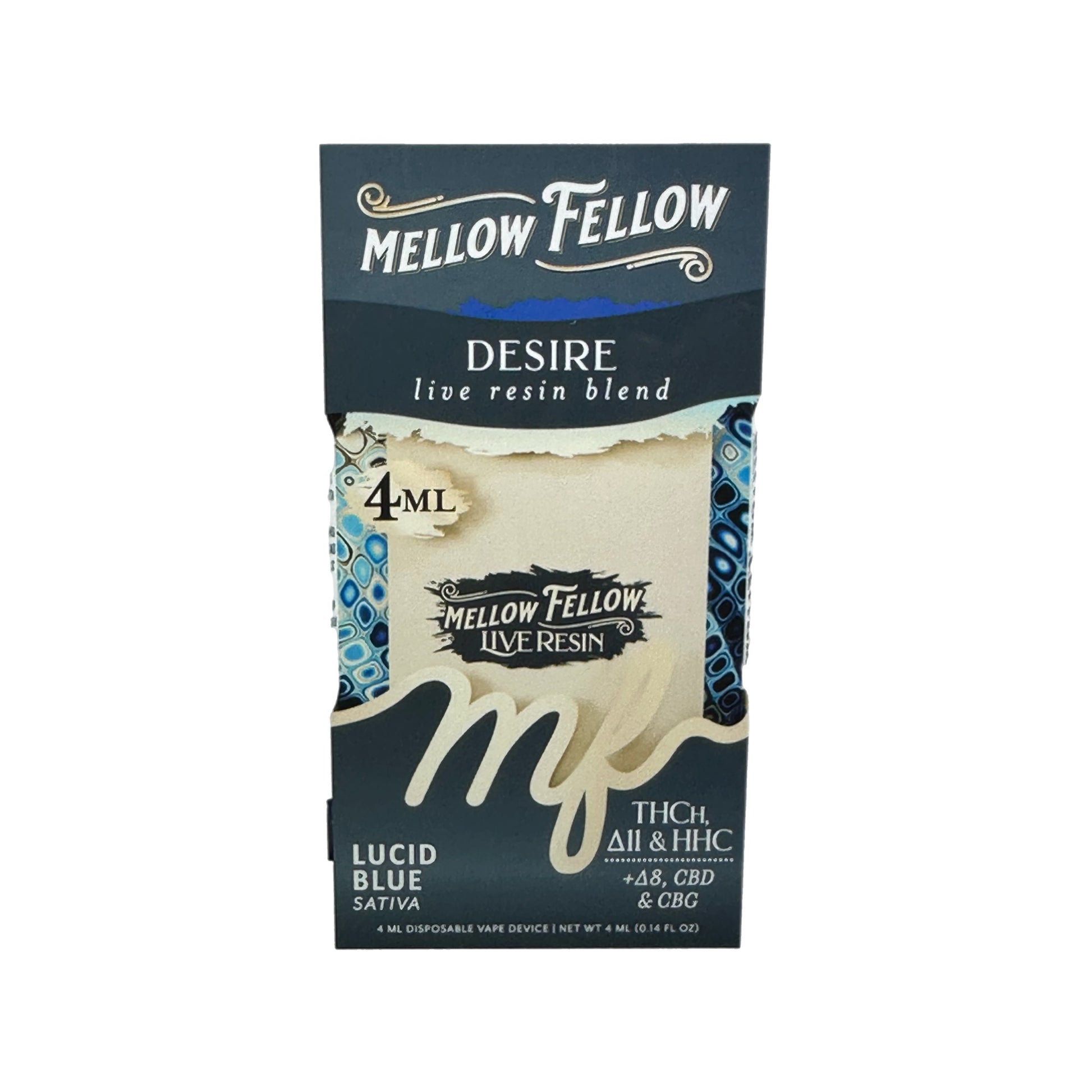 Meet the Mellow Fellow Live Resin Disposable 4G, a powerhouse blend crafted for those who appreciate purity, potency, and flavor in every puff. Each disposable vape is packed with a unique mix of cannabinoids — CBD, CBG, Delta-8 THC, and HHC — all derived from high-quality hemp and infused with strain-specific terpenes for a smooth, flavorful experience.